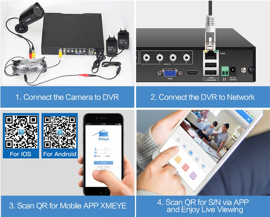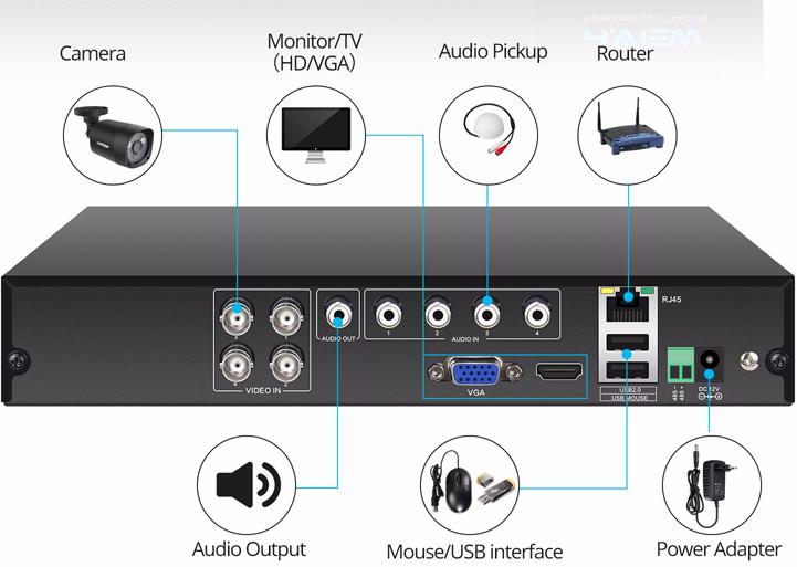 - Четыре миниатюрные купольные HD-CVI видеокамеры с разрешением 1280х720 пикселей
